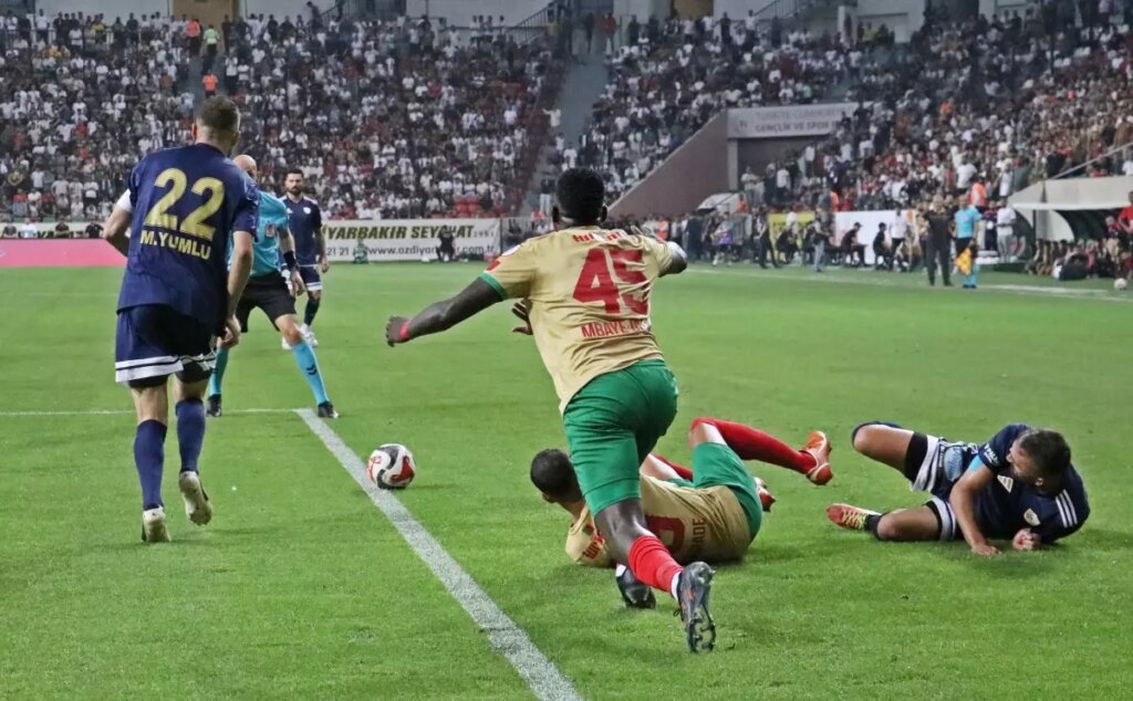 Amed Sportif Faaliyetler, 10’uncu dakikada sağ kanattan gelişen atakta Murat Uçar’ın ön direğe yaptığı ortaya hareketlenen Dia Saba, sağ ayağıyla yaptığı vuruşta topu ağlarla buluşturarak maçta beraberliği getirdi: 1-1.