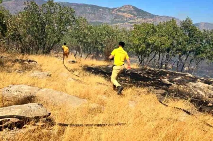 Diyarbakır'ın Dicle ilçesine bağlı Taşağıl Mahallesi'nde çıkan orman ve örtü yangını, itfaiye ve Orman...