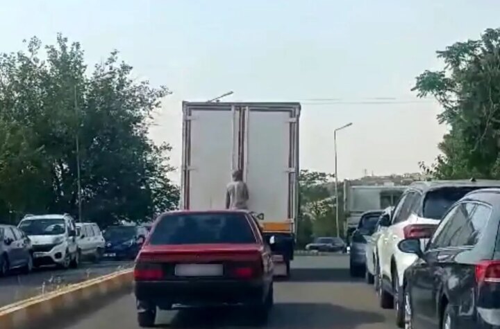 Diyarbakır'ın Sur ilçesinde, bir şahıs seyir halindeki bir kamyonetin gerisine tutunarak tehlikeli bir seyahat...