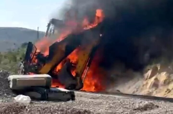 Malatya'nın Akçadağ ilçesinde bir beton santralinde çalışan iş makinesi bilinmeyen bir sebepten ötürü alev...