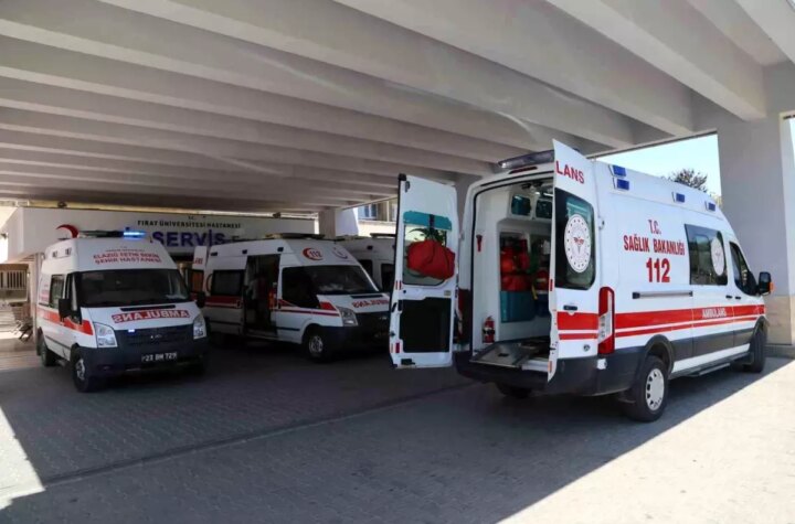 Elazığ'da inşaat halindeki bir binanın dış cephesine kurulan iskele bilinmeyen bir nedenle çökerek 2...