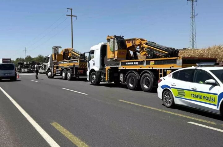 Bismil ilçesinde şoförünün denetiminden çıkan gübre yüklü tır yol kenarına devrildi. Kazada yaralanan olmazken,...