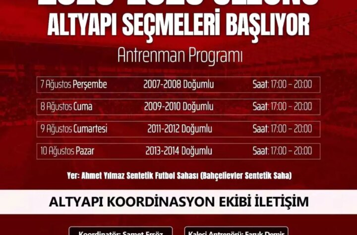 Seza Çimento Elazığspor, 'Geleceğin Yıldızları Burada Parlıyor' sloganıyla altyapı seçmelerine başlayacak. Seçmeler, Ahmet Yılmaz...