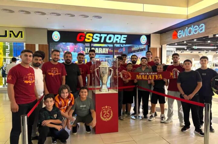 Galatasaray'ın 2024-2025 sezonu Süper Lig şampiyonluğunu simgeleyen 25. kupa, Malatya Park AVM'deki GSStore'de taraftarların...