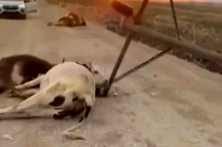 Diyarbakır'ın Lice ilçesinde çıkan fırtına nedeniyle devrilen elektrik direği, meradan dönen 6 büyükbaş hayvanın...