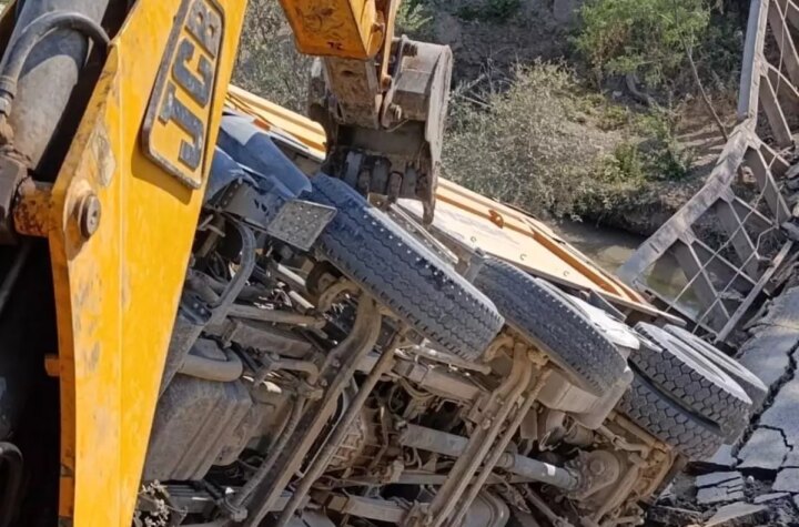 Malatya'nın Akçadağ ilçesinde, hafriyat yükleyen bir kamyonun geçişi sırasında demir aksamlı köprünün çökmesi sonucu...
