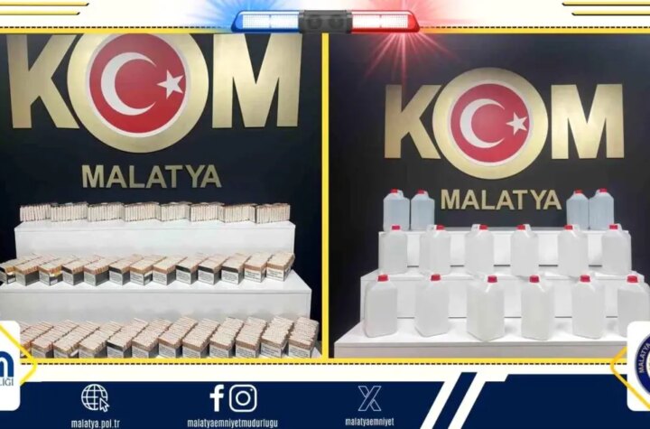Malatya'da gerçekleştirilen operasyonda 9 bin 520 makaron ve 80 litre etil alkol ele geçirildi,...