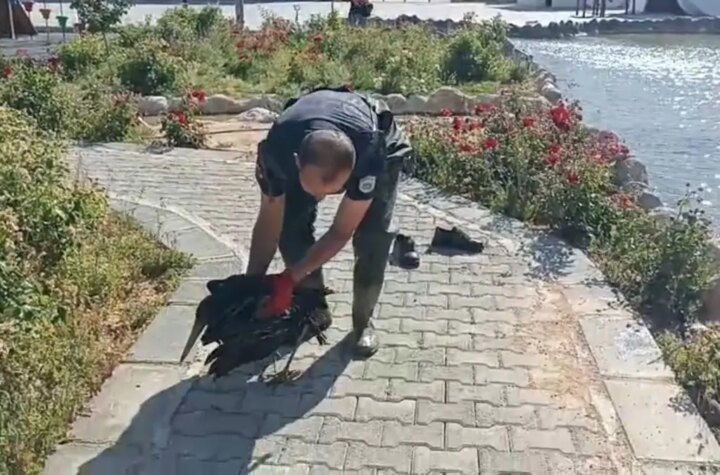 Malatya'nın Darende ilçesinde yaralı bir leylek, itfaiye takımları tarafından süs havuzundan kurtarıldı ve tedavi...