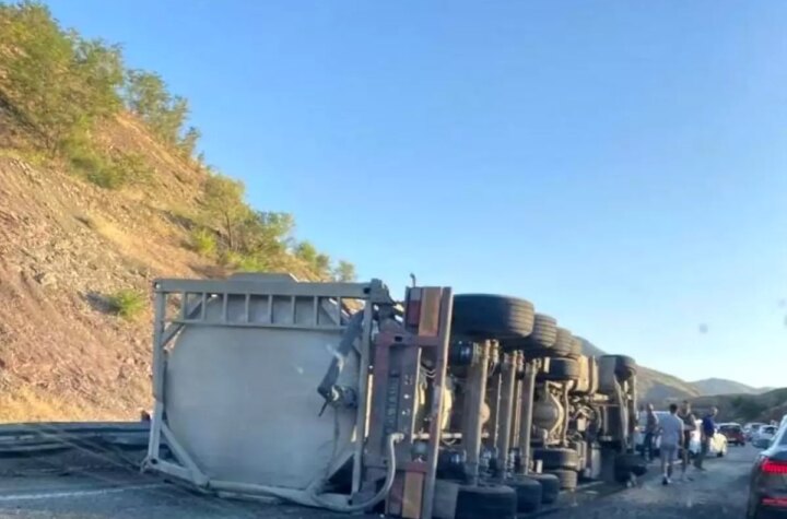 Maden ilçesinde direksiyon hakimiyetini kaybeden şoförün tırı yoldan çıkarak yan yattı. Olayda 1 kişi...