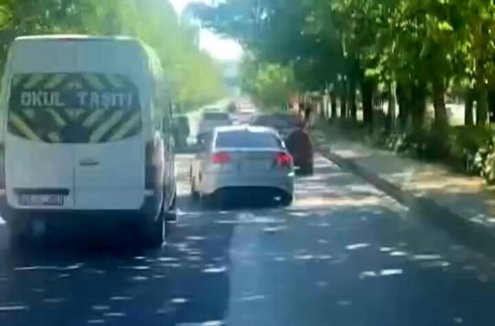 Elazığ'da Malatya Caddesi'nde trafiği tehlikeye atan bir şoför, makas atarak ilerledi. O anlar öteki...