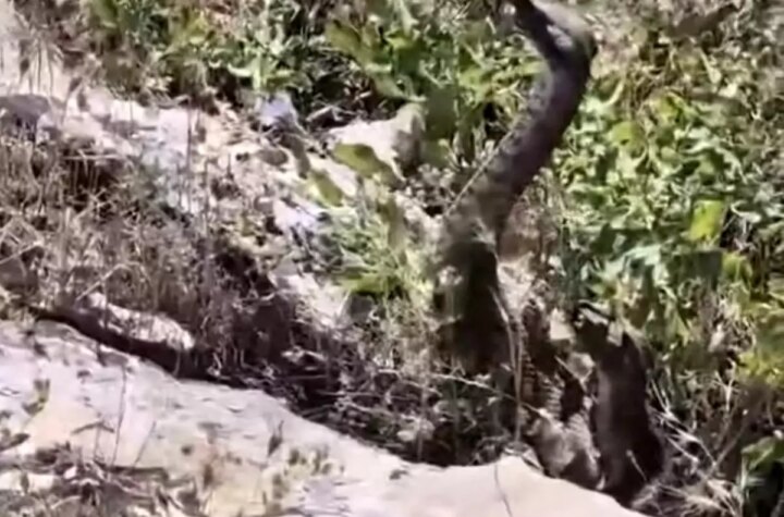 Elazığ'da Keban Baraj Gölü kenarında bir vatandaş, çiftleşme devrindeki yılanların dansını çekerken bir yılanın...