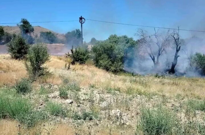 Elazığ'ın Keban ilçesinde otluk ve ağaçlık alanda çıkan yangına itfaiye ve orman işçisi müdahale...