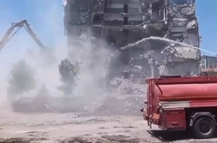 Diyarbakır'ın Kayapınar ilçesinde 6 Şubat sarsıntılarında ağır hasar alan 8 katlı bir bina, denetimli...