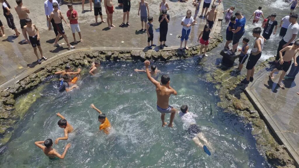 Diyarbakır’da Çocuklar Yasak Olan Süs Havuzunda Serinledi