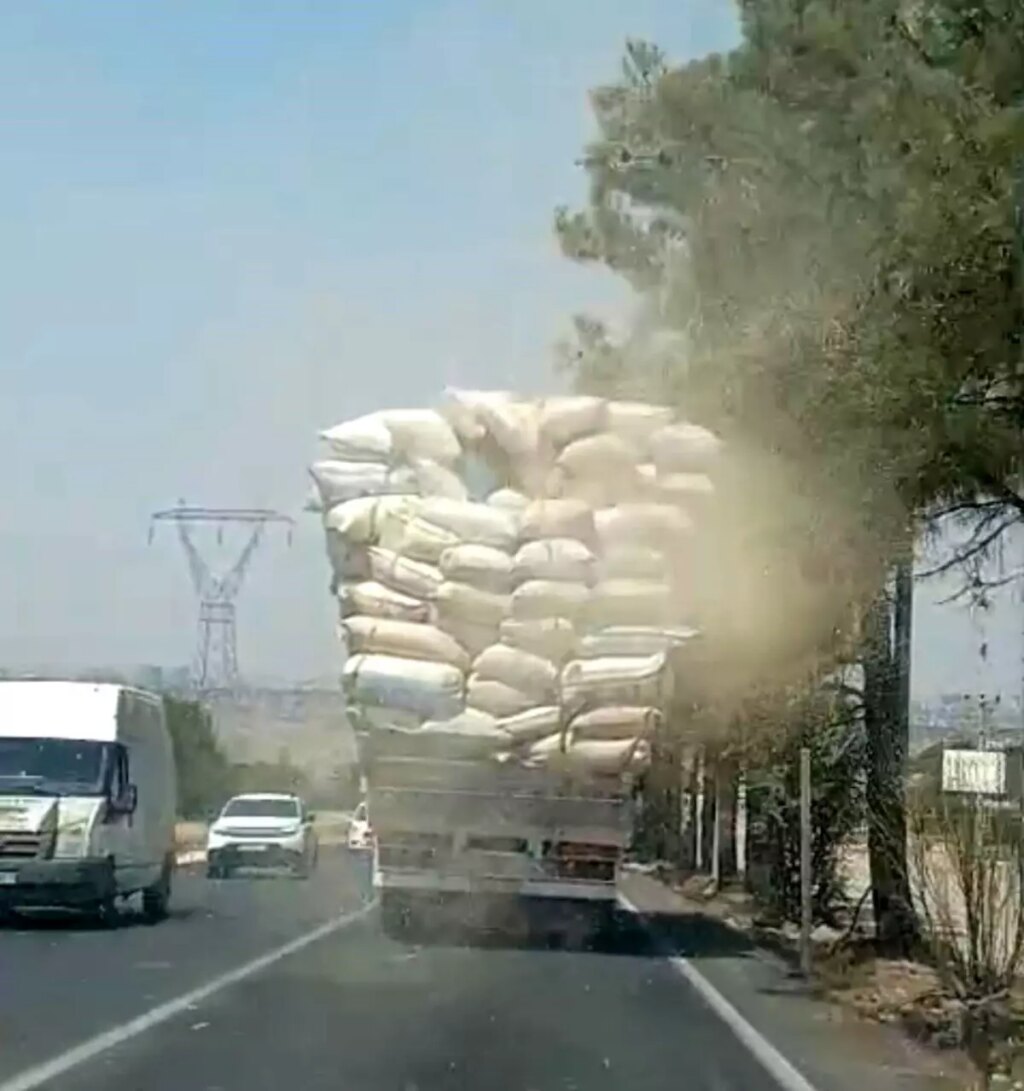 Diyarbakır'ın Silvan Bulvarı'nda, saman yüklü bir kamyonun rüzgar nedeniyle samanları yola dökmesi sonucu öteki araçların görüş açısını kapatması trafiği tehlikeye soktu. Olay, bir vatandaş tarafından cep telefonuyla kaydedildi.