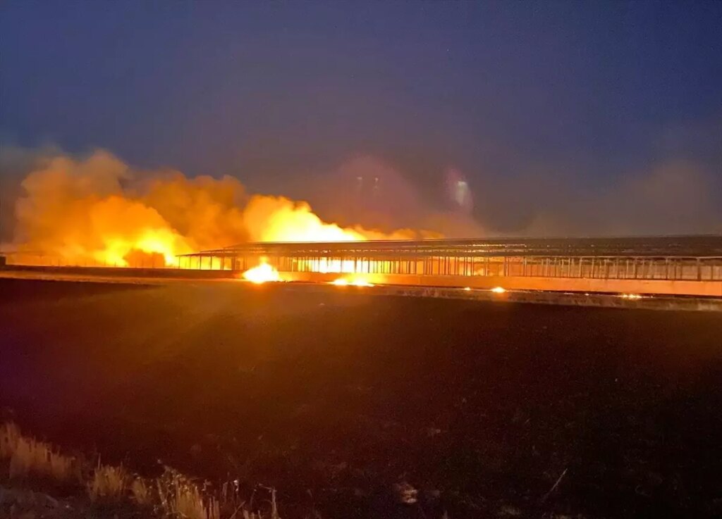Yangında, yaklaşık 60 dönümlük alanın ve bir çiftliğin ziyan gördüğü öğrenildi.