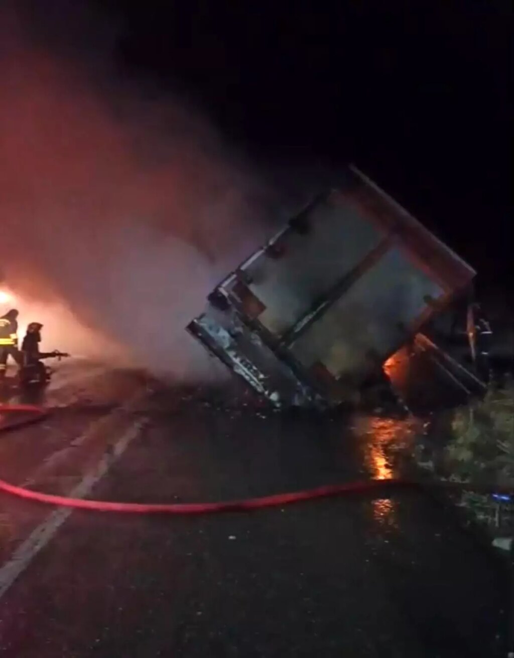 Edinilen bilgilere nazaran, dün gece saatlerinde ilçenin Oğlaklı Mahallesi’nde şoförünün direksiyon hakimiyetini kaybettiği tır, yol kenarına devrilerek alev aldı. Şoför, hafif halde yaralandı.