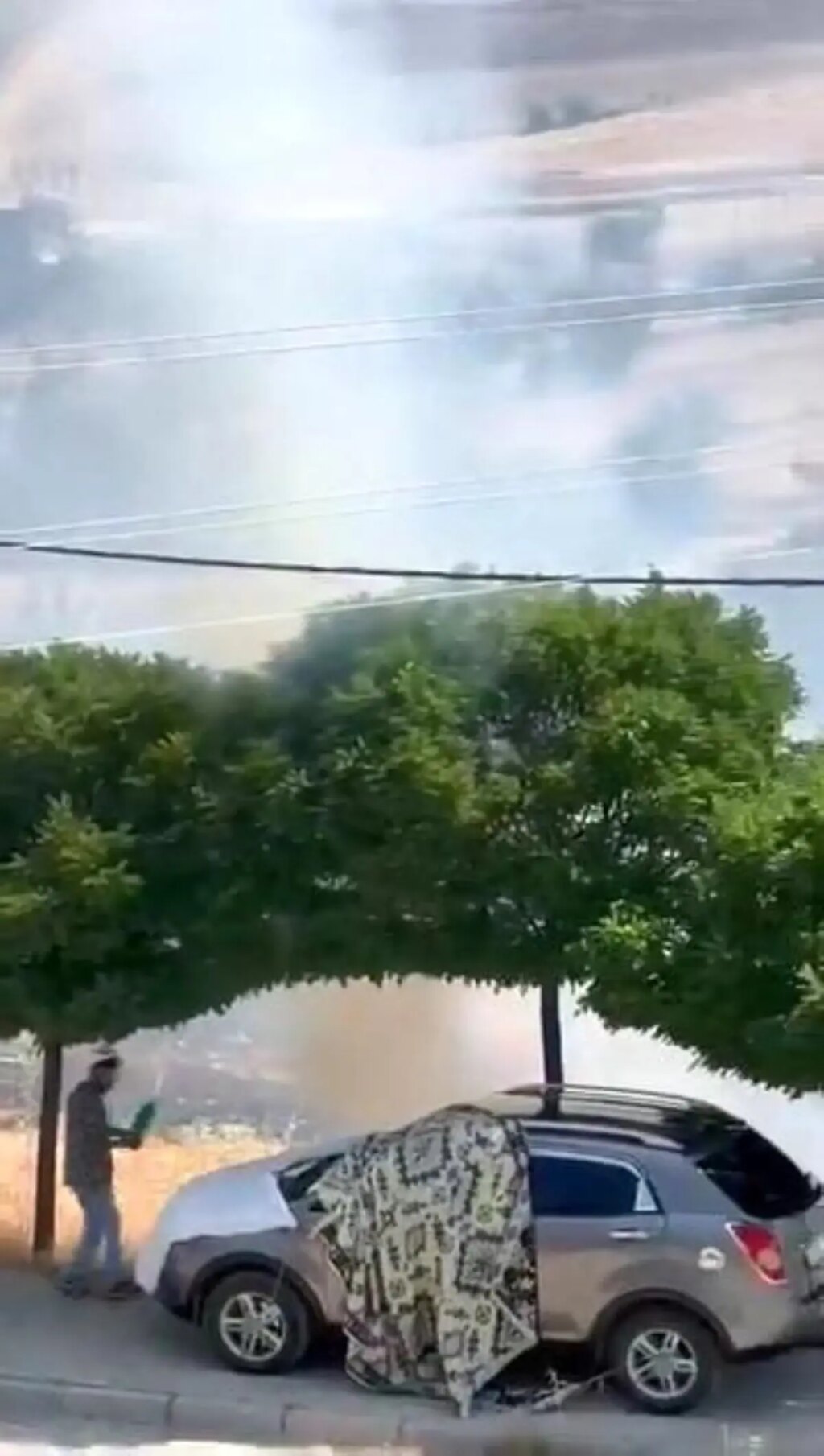 Olay Elazığ’ın Kovancılar ilçesinde bulunan TOKİ Mahallesi’nde yaşandı. Şimdi bilinmeyen bir nedenden ötürü toprakta yangın çıktı. Rüzgarın tesiriyle büyüyen yangın, park halindeki arabaya hakikat yöneldi. Durumu fark eden gençler, şişelerle su taşıyarak yangının hem büyümesini hem de araca gelmesini engelledi.