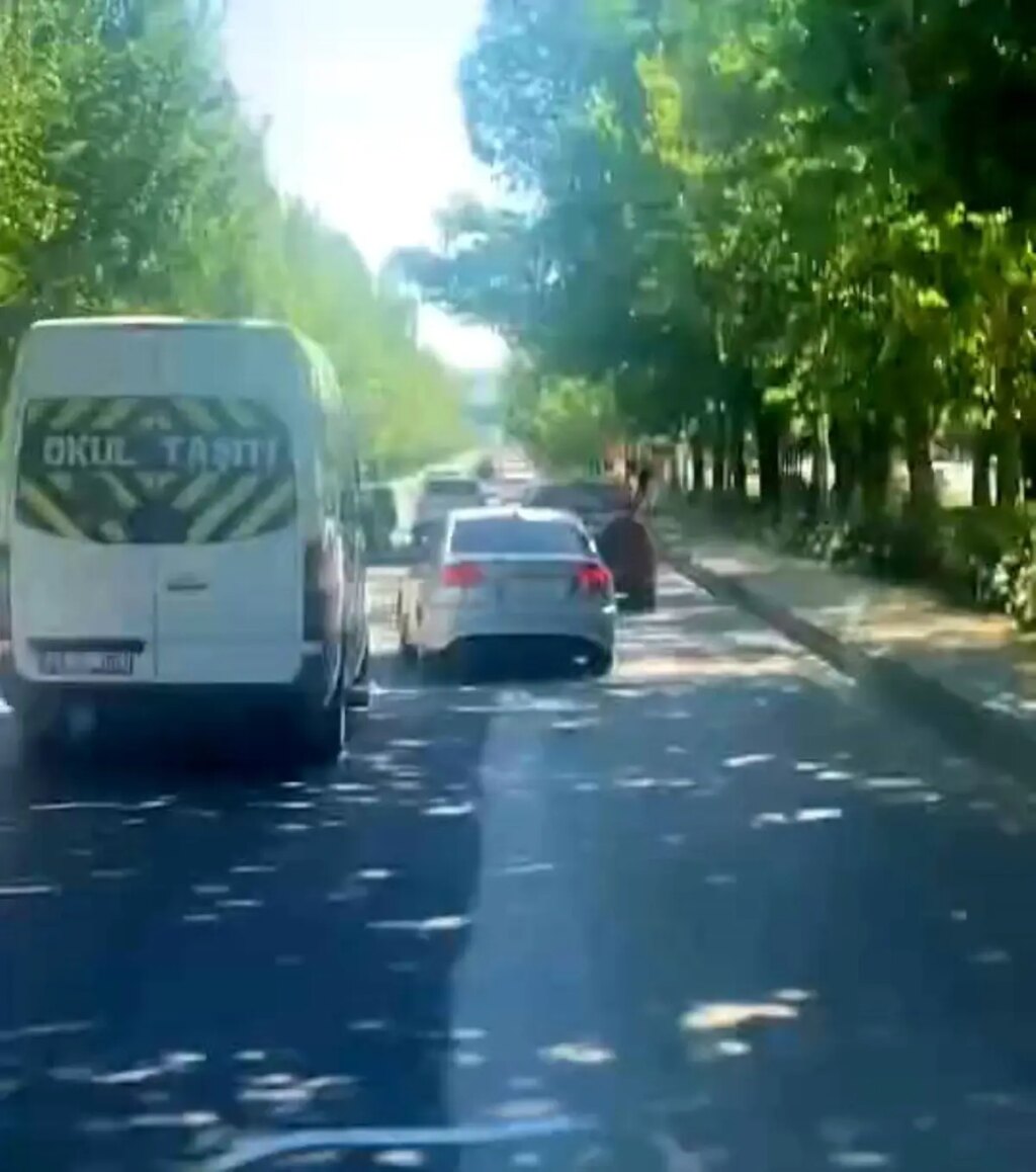 Elazığ’da makas atarak trafiği tehlikeye atan şoför kameraya yansıdı.