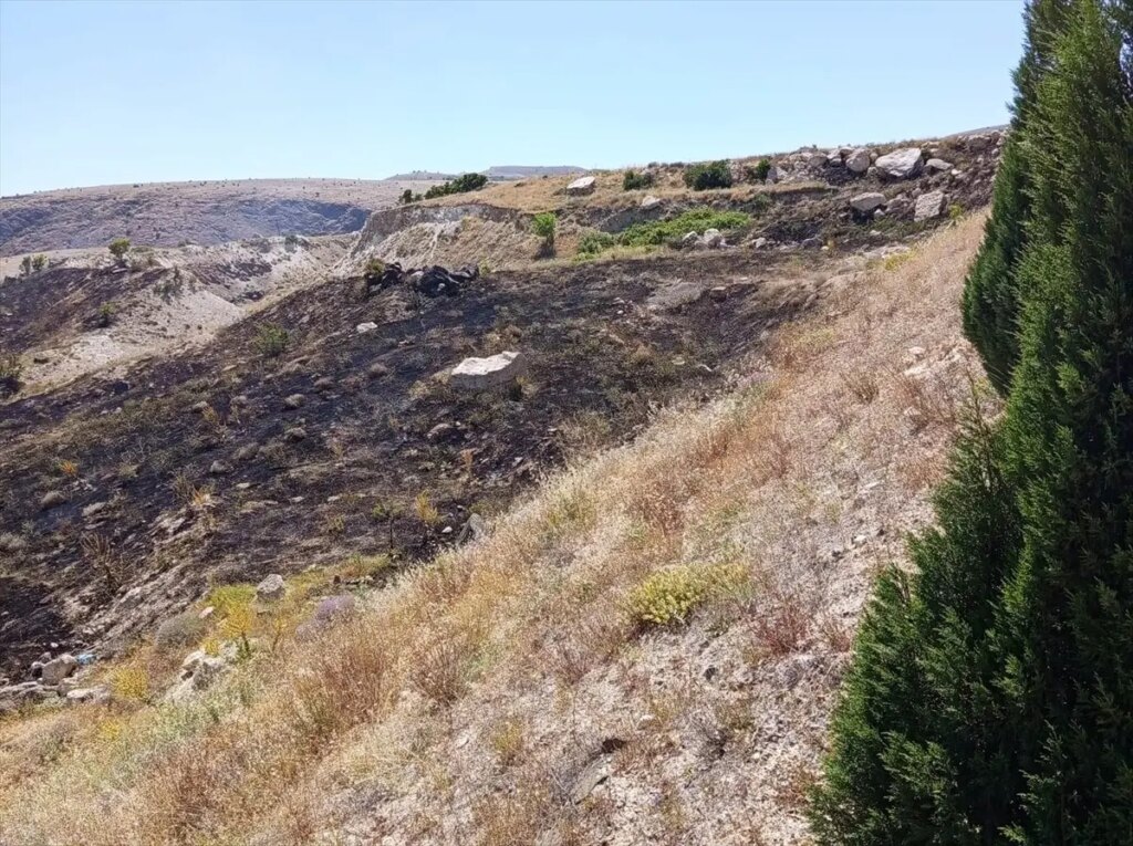 Ekiplerce söndürülen yangında 2 dönüm otluk alan zarar gördü.