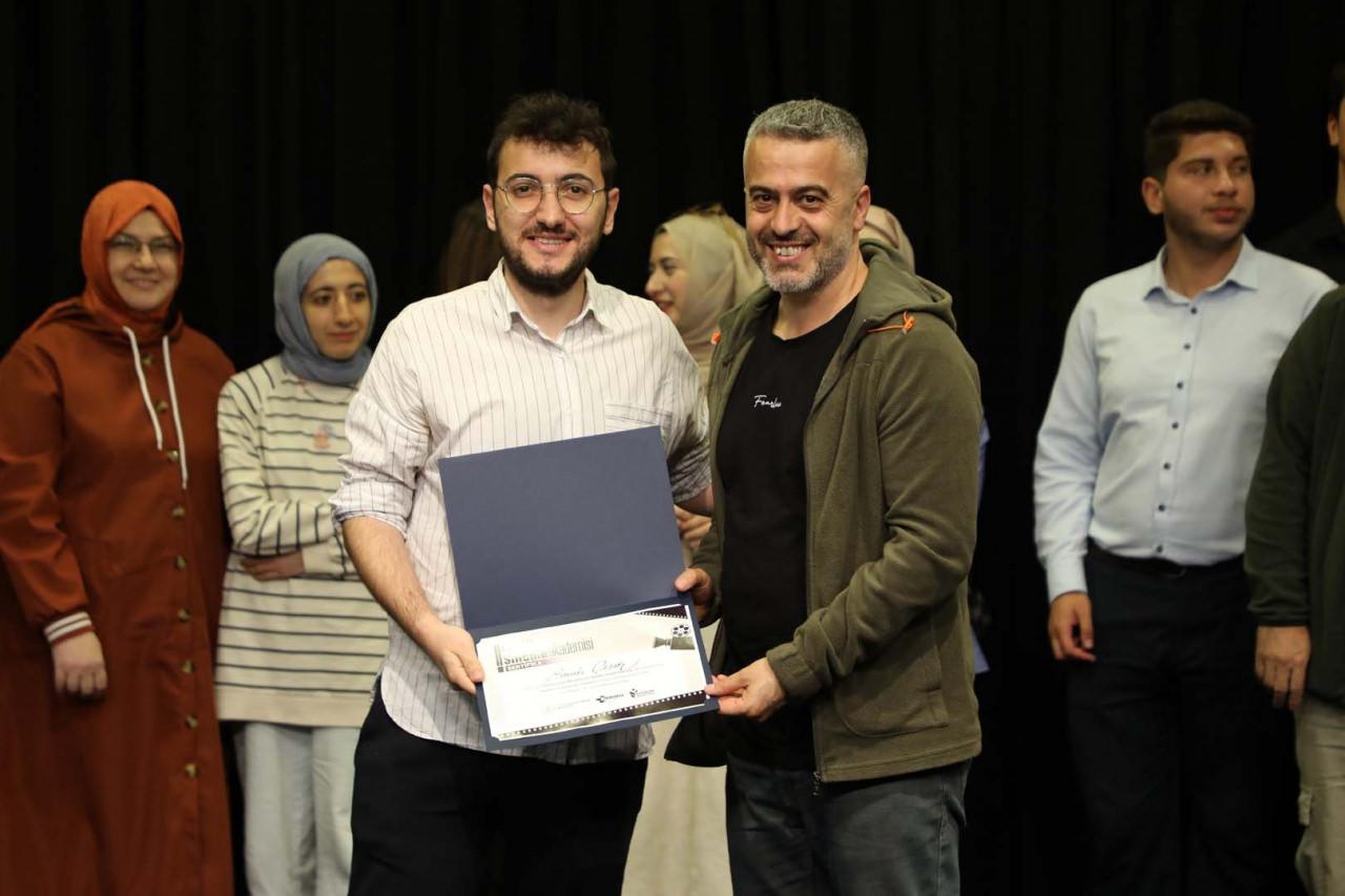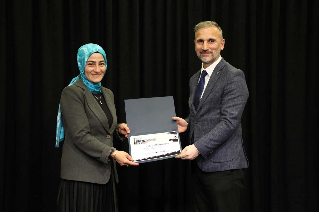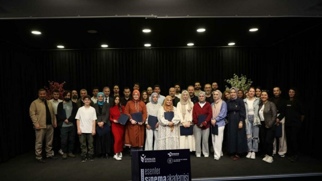 Sinemaya ilgi duyan gençleri kapsamlı bir eğitimle bölüme hazırlayan Esenler Sinema Akademisi’nde mezuniyet heyecanı yaşandı. Senaryo, direktörlük, kurgu, sinema tarihi ve eleştirmenliği olmak üzere dört kısımda eğitimlerin verildiği akademide öğrenciler, üç ay boyunca alanında uzman eğitmenler eşliğinde sinemayla ilgili hem teorik bilgiler edinecek hem pratik yapma imkânına sahip oldu. Akademinin kapanış programı ise Dr. Kadir Topbaş Kültür Sanat Merkezi’nde gerçekleşti. Programa Esenler Belediyesi Lider Yardımcısı Hüseyin Cerrahoğlu, Esenler Sinema Akademisi proje koordinatörü Suat Köçer, eğitmenler, öğrenciler ve çok sayıda sinemasever katıldı.