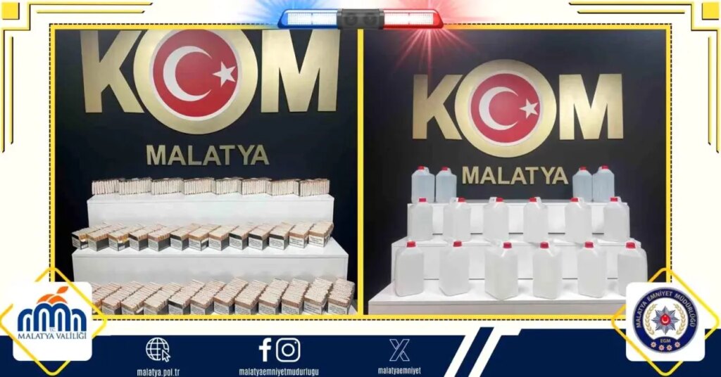Malatya’da polis takımlarınca düzenlenen operasyonda 9 bin 520 makaron ile 80 litre etil alkol ele geçirildi, 2 kuşkulu hakkında yasal süreç başlatıldı.