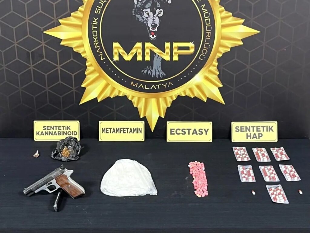 Malatya'da düzenlenen narkotik operasyonunda 234 gram metamfetamin, 147 adet ecstasy hap, 97 adet sentetik ecza hap, 5 gram sentetik kannabinoid ve bir ruhsatsız tabanca ele geçirildi. 4 kuşkulu gözaltına alındı.