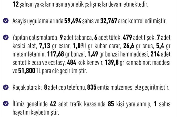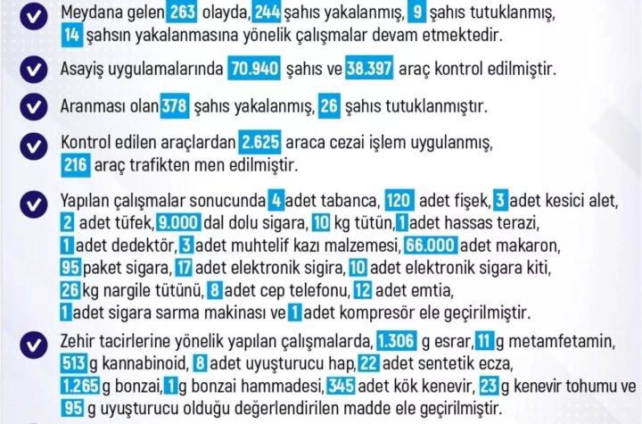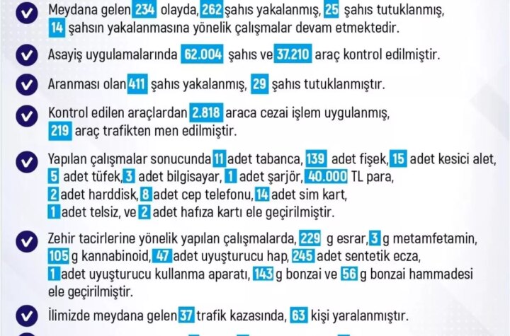 Elazığ'da son bir haftada meydana gelen 234 olayda 262 şahıs yakalanırken, 25 kişi tutuklandı....