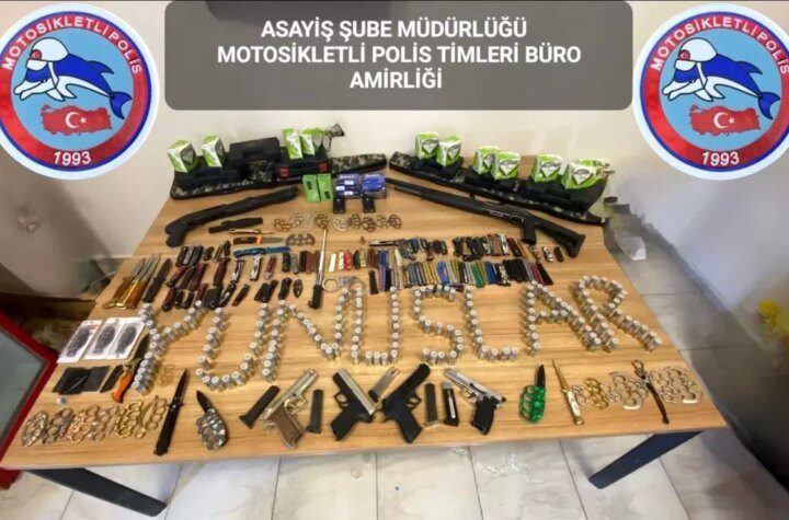 Elazığ'da yapılan polis operasyonunda, bir konutta ruhsatsız silahlar ve çok sayıda kesici alet ele...