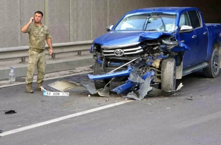 Malatya-Elazığ kara yolunda meydana gelen zincirleme trafik kazasında sivil polis aracı ve jandarma aracı...