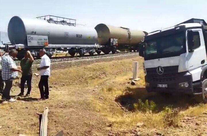 Elazığ - Bingöl karayolu Koçkale köyünde meydana gelen kazada akaryakıt yüklü bir tren, hemzemin...