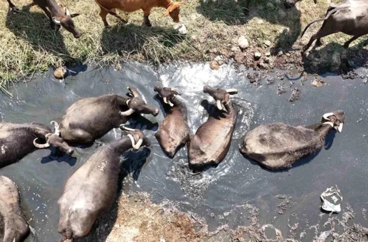 Diyarbakır'da 45 dereceyi aşan hava sıcaklıkları, çiftlikteki mandaların günde 5 saat gölette serinlemeleriyle başa...