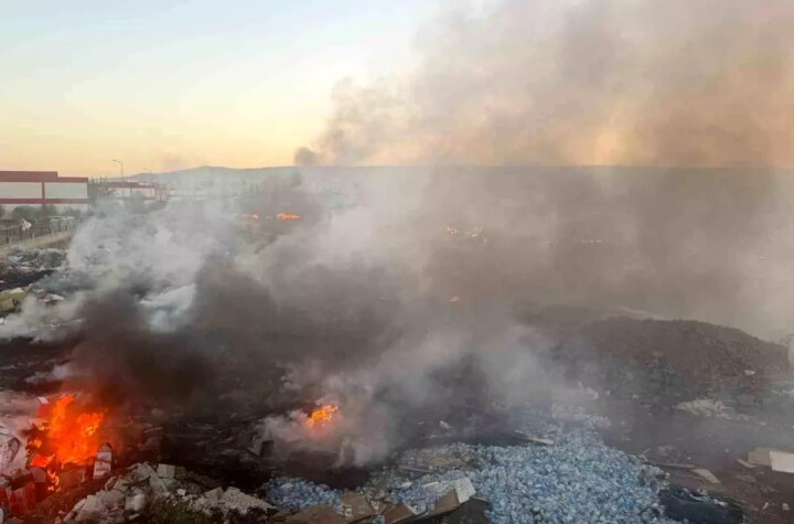 Diyarbakır Mega Sanayi Sitesi'nde atık çöp toplama alanında çıkan yangın, itfaiye takımları tarafından denetim...