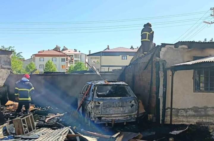 Elazığ'ın Kovancılar ilçesinde çıkan yangında bir otomobil kullanılamaz hale gelirken, odunluk büsbütün yandı. Yangının...